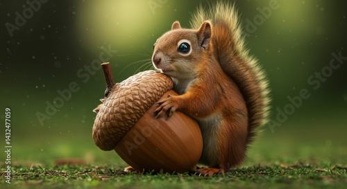 squirrel, acorn, animal, wildlife, nature, cute, adorable, grass, forest, mammal, closeup, autumn, timberland, nut, rodent, small animal, fauna, fluffy, green background, natural light