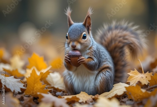 squirrel, autumn, nature, wildlife, photo, acorn, leaf, forest, cute, animal, fall, maple, orange, yellow, mammal, furry, ground, timberland, rustic, seasonal, harvest, decor, wall, art, print, home, cosy, natural, scenic, beautiful, charming, adorable, creature, foraging, peaceful, serene, gold, hours, light, soft, sharpened, bokeh, background, aesthetic, vibrant, colours, autumn