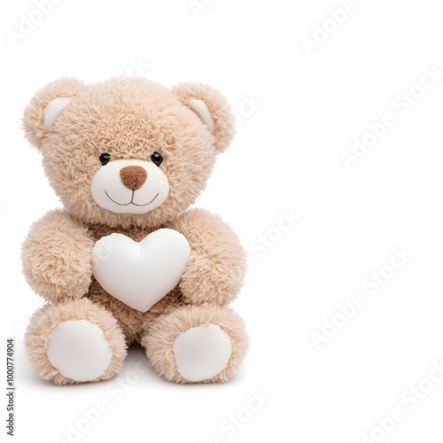 Adorable Teddy Bear Holding a Heart Isolated on White Background