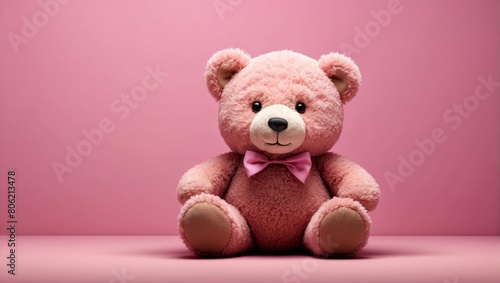 Adorable Teddy Bear on Soft Pink Background - Perfect for Childhood Nostalgia and Nursery Decor