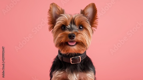 Adorable Yorkshire Terrier in Stylish Collar Against Pink Background