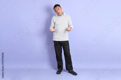 person, portrait, man, asian, 40s, male, isolated, adult, background, smart, studio, standing, casual attire, chinese, colours, blue, purple, crying, sad, depression, grief, pain, stress, emotion, expression, despair, frustration, down
