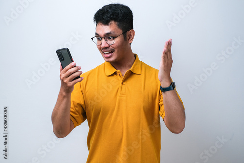 adult, asian, guy, cheering, excited, expression, face, funny, gesture, indonesia, happy, holding, looking, smart, phone, advertisement, isolated, white, background, man, model, mouth, open, portrait, screen, showing, surprised, winning, shocked, people, fist, hipster, camera, mobile, empty, blank, indonesian, person, attractive, bright, mobile phone, chatting, communicate, friendly, photogenic, media, message, online, smile