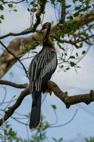 Adult female Anhinga perched on a branch of a tree in the Everglades, Florida, USA