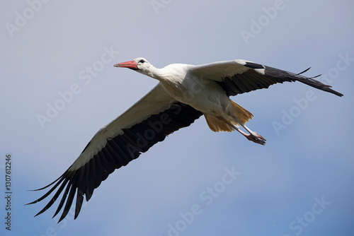 Adult white stork (ciconia ciconia) in flight