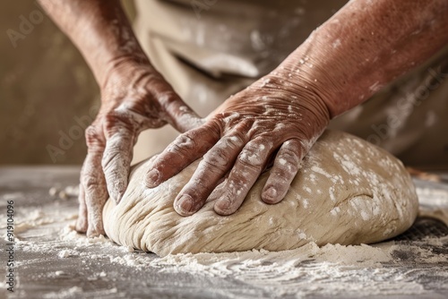 Adult Women Hands Preparing Dough for Bread at Home - Teaching and Learning Concept. Beautiful simple AI generated image in 4K, unique.