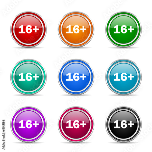 icon, 16, adult, old, warning, 16, content, illegal, only, law, allowed, permission, over, restricted, older, restriction, permitted, forbidden, attention, alert, permit, web, buttons, business, cyberspace, computer, symbol, signs, web icon, circle, vector, push-button, key, banner, chrome, metallic, set, red, green, blue