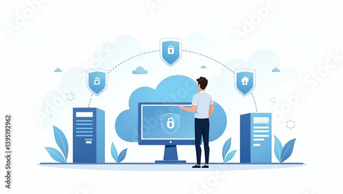 Advanced Cybersecurity in Cloud Computing: Secure Data Protocols & Resilient Networks Illustrated in a Cute Flat Vector Style for Modern Enterprises