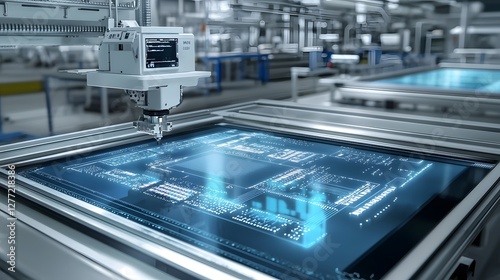 display, technology, electronic, circuit, production, manufacturing, factory, industry, led, printing, innovation, engineering, automation, machinery, assembly, workspace, industrial, futuristic, advanced, digital, high technology, process, prototype, device, research, development, inspection, control, precision, equipment, smart, efficient, cutting edge, complex, intricate, modern, innovative