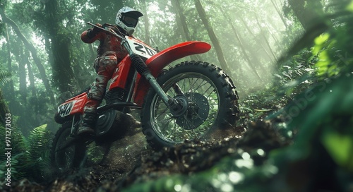 forest, terrain, biking, mud, offroad, dirt bike, challenge, adventure, sport, trail, nature, exploration, greenery, thrilling, jungle, rainforest, exciting, overcoming, motorcycle