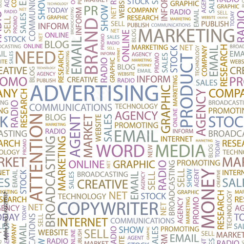 ADVERTISING. Seamless vector pattern with word cloud.