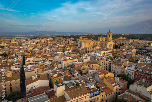 tarragon, spain, aerial, from above, drone, sunrise, spanish, mediterranean, coastline, harbor, marin, mediaeval, roman ruins, sightseeing, flyover, village, town, beautiful, stunning, viewpoint, epic, intersection, helicopter