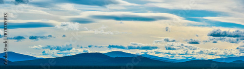 Aerial Panorama of Mountain Range with Coniferous Forest