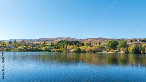 Aerial perspective of the Cromwell gorge and Bannockburn area in Autumn