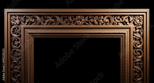 aerial perspective of a decorative wooden frame with intricate sculpted patterns