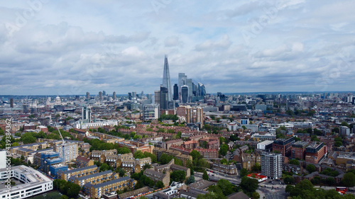 Aerial photo of London skyline. City of London.