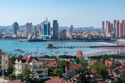 qingdao, aerial, background, city, scenery, landscape, city skyline, building, tour tourism, skyscraper, landmark, downtown, pier, coastline, tourist attraction, square, environment, overlook, topview, aerial view, drone, metropolis, china