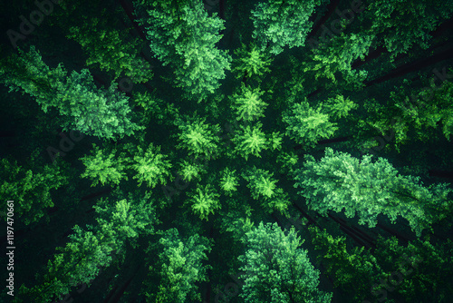 Aerial top view of green trees in forest. Nature and environment landscape