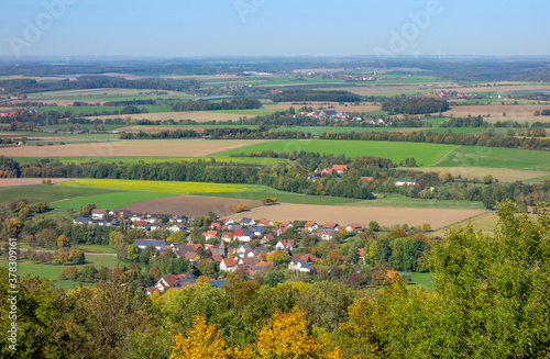 aerial, german, landscape, outlook, rural, village, settlement, field, tree, hamlet, day, horizon