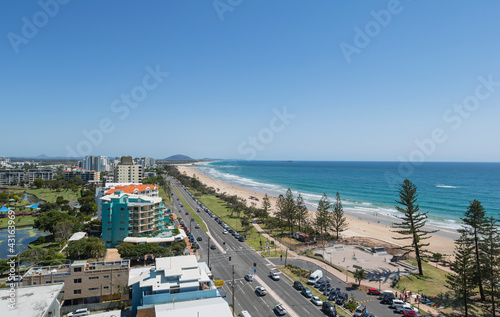 Aerial view looking down on Alexandra Parade, Maroochydore, Sunshine Coast
