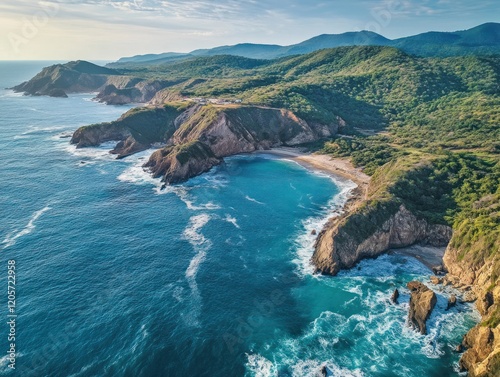 coastline, beach, ocean, sea, cliff, wave, shore, nature, landscape, aerial, sand, water, rock, greenery, mountain, view, coastal, scenery, outdoors, island, travel, destination, turquoise, blue, scenic, beautiful, natural, environment, topography, vacation, holiday, tour tourism, remote, isolated, calm, tranquil, peaceful, serene, tropical, cove