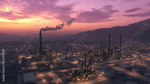 refinery, industry, plant, oil, gas, smoke, sunset, skyline, production, machinery, energy, urban, pollution, manufacturing, technology, infrastructure, night time, environment, chemical, facility, landscape, tower, light, aerial, view, twilight, atmospheric, cloud, hill, equipment, night, city, horizon, aerial view, operation, job, site, process, system, transportation, research, development, oilfield, resource, supply, economy