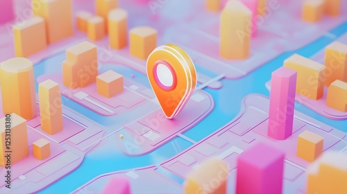 Aerial view of a futuristic 3D geometric city skyline with colorful cubes abstract buildings and a modern architectural design The image represents the concept of smart city development