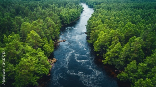 river, forest, aerial, nature, landscape, water, tree, scenery, calmness, wilderness, environment, travel, peaceful, ecology, flow, summer, adventure, scenic, calm, explore, remote, beauty, natural, habitat, lush, vibrant, clear, journey, blue, fresh, wildlife, untouched, serene, picturesque, sunlight, ripple, ecosystem, greenery, sky, horizon, meandering, pristine, exploration, biodiversity