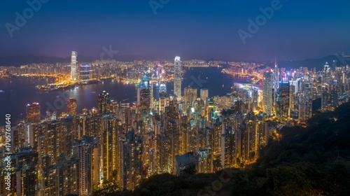 city, skyline, night, skyscraper, light, aerial, perspective, urban, landscape, misty, cloud, light, blue, tone, illuminated, vibrant, full, colours, fisheye, shot, spectacular, scenery, tower block, building, view, dazzling, up high, entire, covering, vitality, brightly, showing, scene, fullness, captivating, evening, glow, modern, architecture, panorama, city landscape, twilight, lively, dynamic, atmosphere, urbanity, grandeur