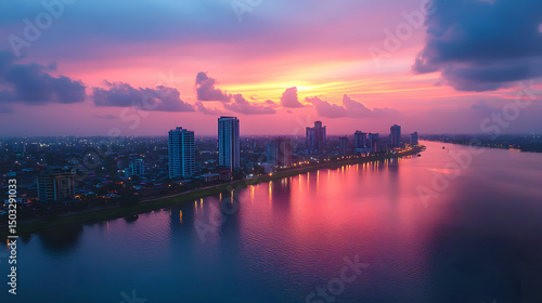 aerial, skyscraper, skyline, city, modern, waterfront, sunset, urban, architecture, view, landscape, lagoon, africa, panorama, city landscape, sunlight, tropical, building, twilight, scenic, horizon, silhouette, dusk, evening, coastal, nature, water, skyscraper, coast, river, light