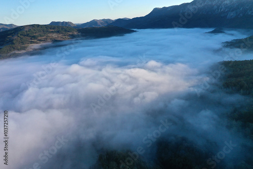 vale, landscape, foggy, nature, aerial, mountain, fog, mist, hill, beautiful, forest, sky, view, scenic, morning, environment, travel, cloud, tree, misty, sunrise, peak, background, dawn, scene, idylli, cloud, early, natural, light, scenery, high, park, outdoors, beauty, range, slope, sunlight, atmosphere, layer, sunset, tree, haze, weather, overcast, ridge, autumn, drone
