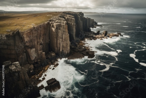 aerial view, cliff, rock formation, stormy sky, landscape, nature, scenic, dramatic, wilderness, adventure, travel, generative, ai, tour tourism, geology, environment