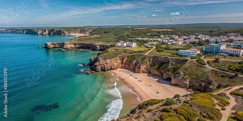aerial, panorama, coastline, algarve, portugal, ocean, beach, wave, cliff, turquoise water, natural beauty, travel destination, scenic, landscape, vacation, summer, sandbeach, atlantic ocean, famous landmark, adventure, tour tourism, seascape
