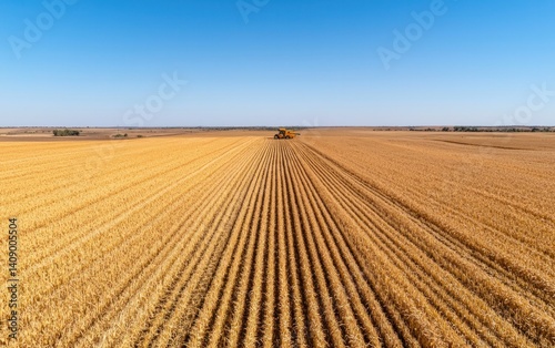 wheat, field, harvest, agriculture, farming, rural, gold, yellow, sky, blue, landscape, aerial, drone, photo, nature, summer, golden hour, harvesting, farmland, countryside, crop, grain, sun, day, bright, wide, open, space, huge, extensive, line, pattern, texture, background, scenic, beautiful, serene, peaceful, tranquil, image, photo, picture