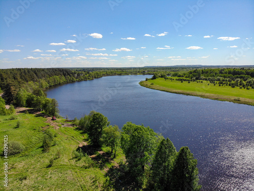 aerial view, lake, russia, blue, water, drone, air, sky, skyline, village, landscape, summer