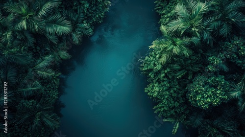 river, tropical, lush, green, vegetation, aerial, view, paradise, serene, tranquil, nature, forest, jungle, palm, tree, leaf, water, dark, teal, deep, drone, photo, top, down, exotic, viewpoint, overlook, landscape, scenic, beauty, peace, calm, harmony, fresh, vibrant, growth, environment, eco, system
