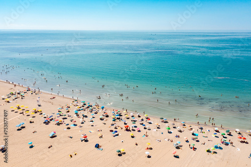 Aerial view of people at the beach enjoying summer