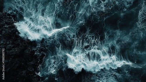Aerial View of Powerful Ocean Waves Crashing on Rocky Coastline