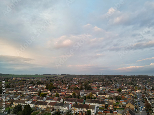 Aerial View of Residential Homes During Orange Sunset over England UK