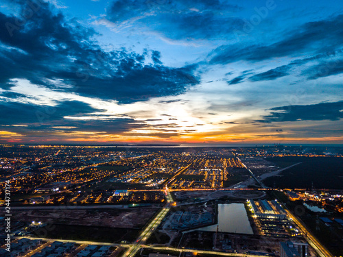aerial, apartment, asia, building, city, city landscape, cloudscape, development, drone, electricity, evening, home, house, landscape, life, light, malaysia, metropolitan, modern, morning, orange, photo, project, resident, sky, source, sunlight, sunrise, sunset, supply, town