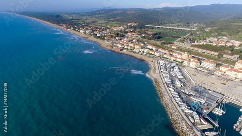 Aerial view of San Vicenzo in Tuscany. Port and city skyline