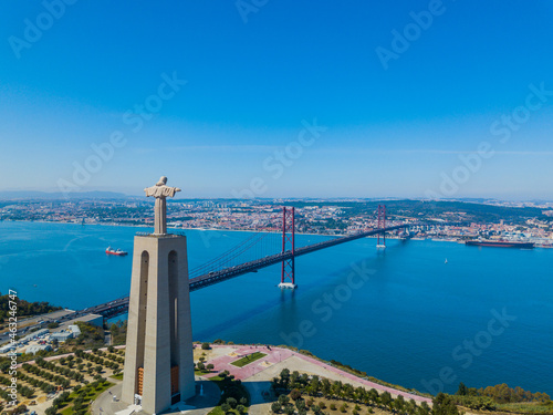 Aerial view of Sanctuary of Christ the King, Santuario de Cristo Rei. Lisbon, Portugal.