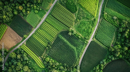 farmland, agriculture, rural, field, green, aerial, photo, nature, landscape, countryside, crop, vegetation, row, planting, dirtied, growth, harvest, farming, meadow, pastoral, eco, environment, organic, sustainable, terra, earth, scene, view, image, picture, photo, shot, overhead, perspective, high, altitude, drone, road, tree, path