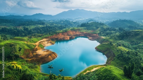 lake, landscape, nature, aerial, view, green, hill, mountain, water, blue, turquoise, serene, calm, peaceful, tropical, jungle, forest, vegetation, plant, tree, sky, cloud, scenic, beautiful, picturesque, panoramic, environment, ecology, geography, geology, earth, land, summer, travel, destination, holiday, vacation, photo, image, photo, vista, scene, horizon, background