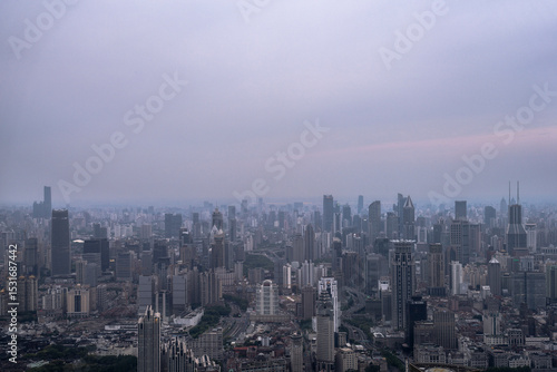 shanghai, skyline, aerial view, city landscape, urban, tower block, skyscraper, building, overcast, dusk, cloudy sky, china, architecture, real estate, metropolitan, twilight, smog, infrastructure, city planning, megacity, evening light, panoramic, development, dramatic sky, moody, pollution, metropolis, housing, landscape