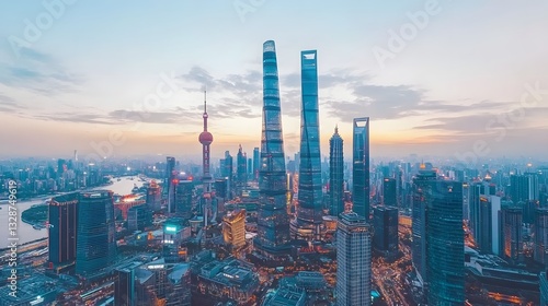 shanghai, skyline, city, urban, architecture, building, tower, skyscraper, china, dusk, sunset, twilight, aerial, view, panorama, city landscape, modern, travel, tour tourism, landmark, night, evening, light, illuminated, scene, structure, asia, oriental, high, rising, complex, design, business, financial, district, vibrant, colourful, metropolitan, infrastructure, construction, destination, landscape, picturesque, horizon, scenic, abstract, top