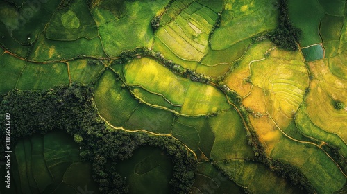 Aerial View of Terraced Rice Fields in Southern Vietnam