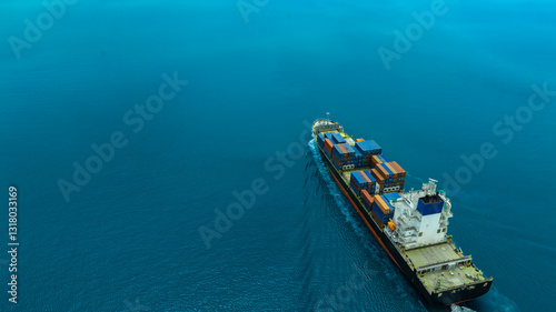 Aerial view of the freight shipping transport system cargo ship container. international transportation Export-import business, logistics, transportation industry concepts