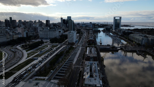 skyscraper, harbor, residential area, flow, drone, drive, office, city, travel, metropolis, urban, buenos aires, parking, riverfront, dock, dusk, background, business, aerial, construction, river, nature, road, water, sky, transportation, building, pier, skyline, city landscape, light, port, aerial view, house, argentine, architecture, up high, boat, bridge, over, beauty, ascend