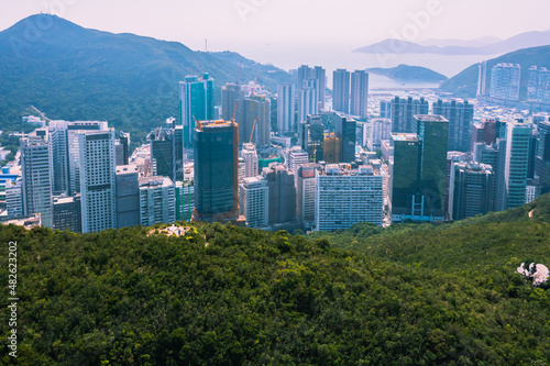 Aerial view Residential neighborhoods in Wong chuk Hang, Aberdeen and Ap Lei Chau in southern Hong Kong.